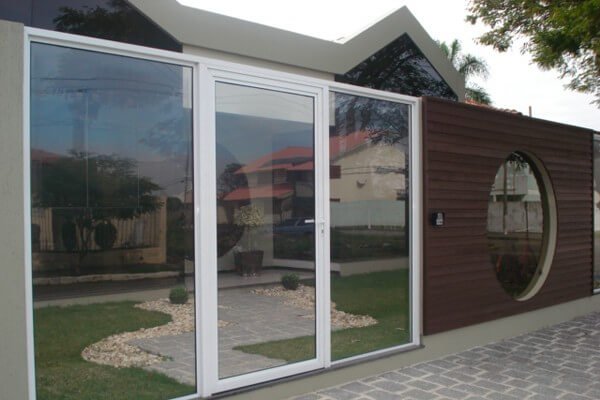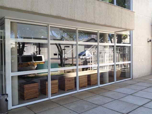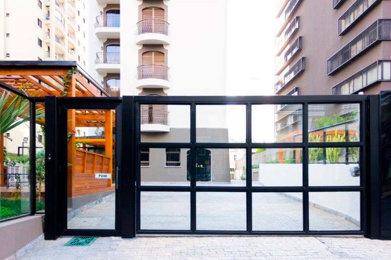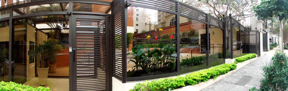 Possibilidades infinitas: Com o uso das esquadrias de alumínio e vidro na entrada do seu condomínio você tem total liberdade para ousar em projetos dos mais variados, estilos, formas e cores. Possibilitando uma apresentação única e moderna para seu projeto.