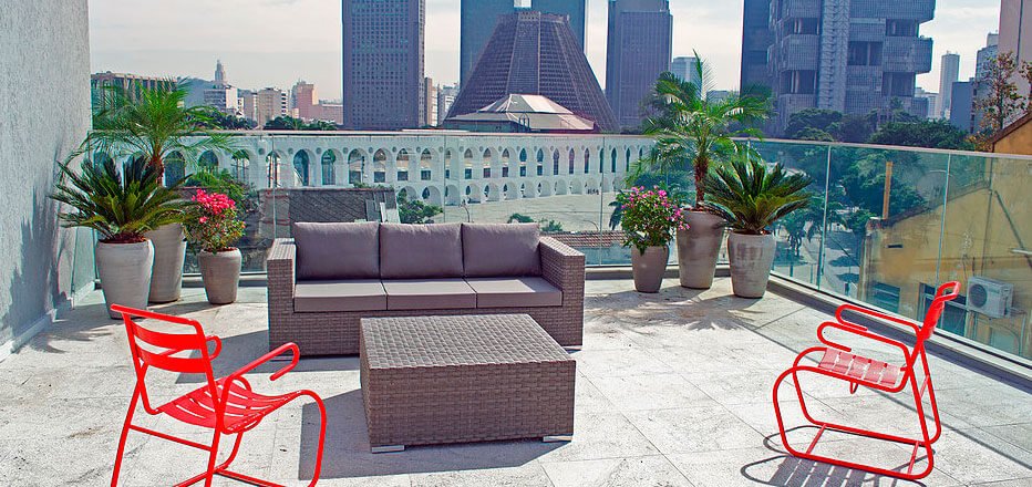Um dos prédios mais charmosos do Rio o antigo Grande Hotel Bragança situado na Lapa, e hoje chamado de Hotel 55 Rio, em dois blocos sendo o primeiro o histórico totalmente restaurado e o bloco anexo composto de uma esquadria de alumínio especial com efeito "óculos" com perfil que sobre saem da fachada externa, feitos de janelas maxi ar projetante na linha Stick Atlanta e vidros laminados colados no sistema Glazing dão mais conforto acústico e performance nesses grandes vãos.